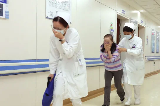 ▲ 疏散患者昏倒,医院CPR救援小组实施紧急救援