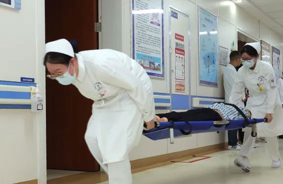 ▲ 医院微型消防站队员及科室消防安全员进行施救、疏导、转运
