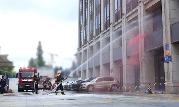 经多方协同全力处置,模拟火情被有效控制,“昏迷患者”复苏成功。经现场清点,所有人员均安全撤离,演练取得圆满成功。