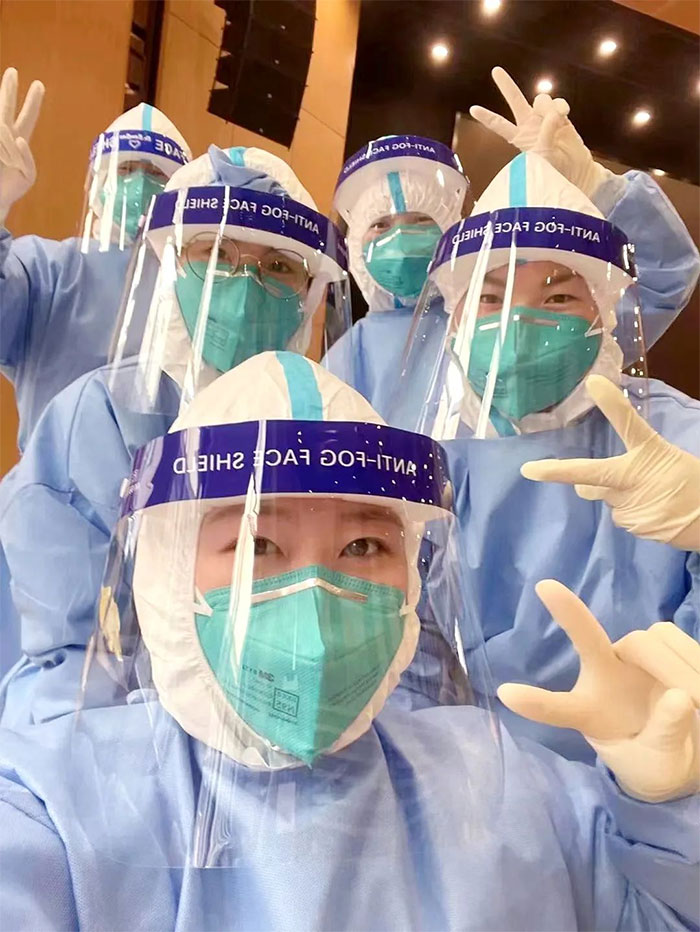 每天早上7点,检验科团队开始准备分配给各科室核酸采样管和鼻咽拭子;八点开始核酸采集,至少忙到下午一点,时常连午饭都顾不上吃;采样完成后,接着便是统计核对管数……作为离病毒最近的人,检验工作单调枯燥且风险巨大,意志和体能面临着双重考验。他们穿着厚厚的防护服、戴着N95口罩,跑上跑下,衣衫湿了又干、干了又湿,脸上留下了深深的勒痕,双手在手套的包裹下泛白起皱,防护面屏也泛起层层白雾,有时因为缺氧导致头晕眼花……没有人临阵脱逃。