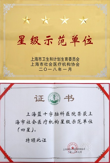 2018年7月3日上海市社会医疗机构协会二届七次理事会召开,会上通报了“第四批上海市社会医疗机构星级评审”结果,上海蓝十字脑科医院首次参加星级医院评审脱颖而出,与其它十一家医疗机构一起获得“四星”示范荣誉,这也是目前上海市社会医疗机构获批的最高等级。院长项耀钧受邀参会并代表医院领取该荣誉。