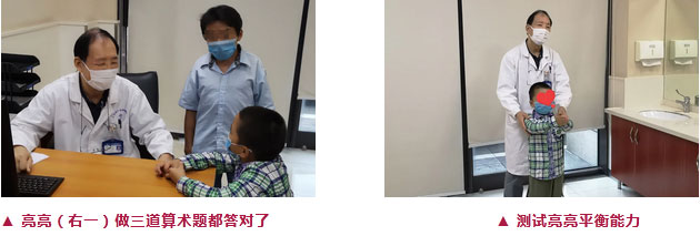正式出院三个月后,亮亮父母带着亮亮前来复诊,检查结果显示亮亮头部的创伤正在愈合,大脑在正常发育。亮亮见了医生、护士、护工就像见到了自己的亲人般,大家亲切地和亮亮打着招呼,抱他、哄他、逗他开心,还专门买了水果和零食送给他吃。经侯增欣主任复查确诊一切正常之后,亮亮爸爸开心地说:“再这样康复休养两年,亮亮差不多就可以回学校上学了。”