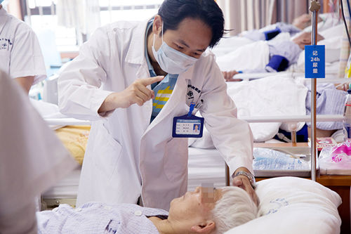 青年医生包文戎对患者进行体格检查
