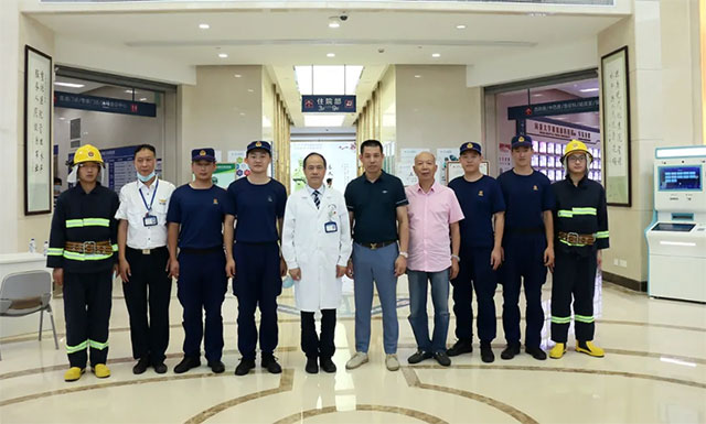 接到总指挥命令后,微型消防站六名队员三分钟抵达二楼火灾现场启用干粉灭火器及消防栓进行施救、疏散病人。