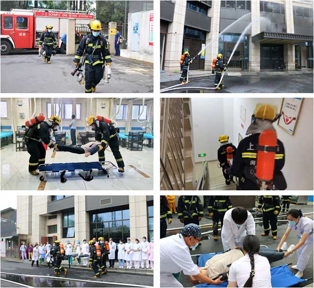 上海蓝十字脑科医院副总经理兼工会主席吴春芳任本次演习总指挥,院长项耀钧参加演习,闵行区消防支队七宝消防救援站配合演习。现场模拟二楼中医治疗室发生火灾,进行紧急施救、患者转运、疏散逃生演习。通过本次消防演习,对全院各个临床科室的消防应急分工和各行政职能科室联动配合进行检验。