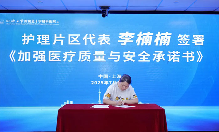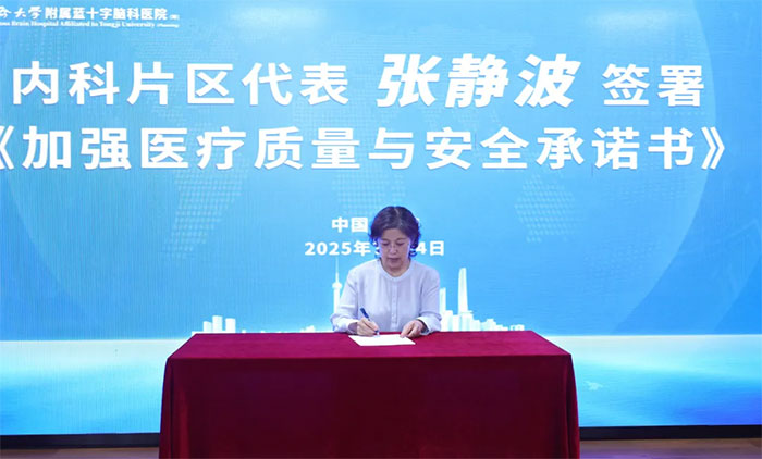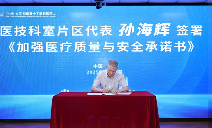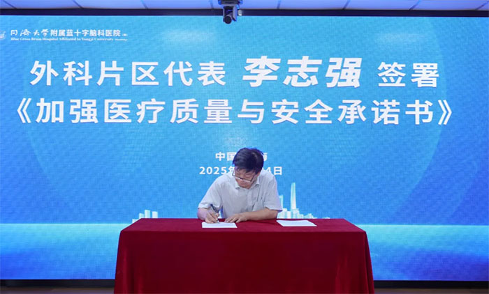随后,张静波主任、李志强主任、孙海辉主任、李楠楠护士长分别代表内科片区、外科片区、医技科室片区、护理片区,上台签署《加强医疗质量与安全承诺书》。