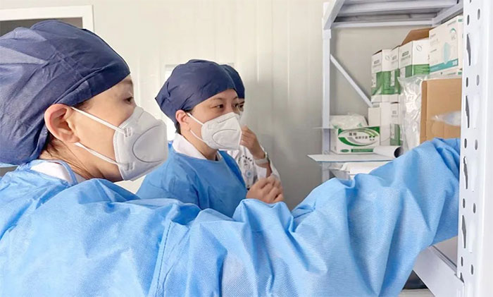 座谈会后,督导组围绕“防疫重点关注工作、综合防控措施、组织管理、功能设置、病区管理、医废管理、个人防护和消毒、核酸检测与隔离医学观察”等内容,兵分三路深入医院,实地走访。