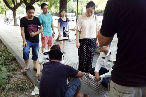 罗佳确保该男士安全后,蹲下来仔细观察其发作症状
