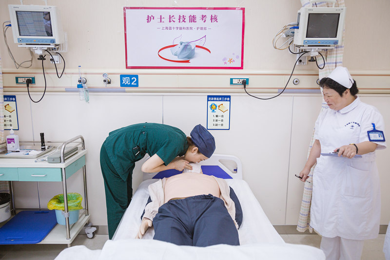 为进一步巩固和提高全院护理团队的急救操作技能, 7月28日下午,我院护理部对全院护士长开展了心肺复苏技能考核。此次考核共有10名护士长参加,分别来自9楼-ICU病区、手术室、8楼-ICU病区、6楼神经外科病区、5楼神经内科病区、4楼神经内科病区、3楼功能神经外科病区、DSA血管神经介入治疗室、门诊、急诊等科室,由护理部叶文琴总监、赵建华主任、急诊潘水云护士长等监考。