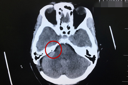 术后CT显示:小脑及脑干形态如常,未见明显异常密度病灶。