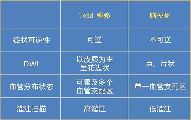 癫痫后Todd瘫与脑梗死的鉴别诊断,主要有以下几个要点:
