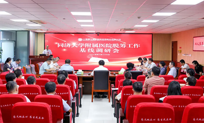 8月 26日下午,上海蓝生脑科医院投资股份有限公司(以下简称“蓝生脑科”)卓立强董事长带领由公司高层及相关部门负责人组成的专项调研组莅临上海蓝十字脑科医院【同济大学附属蓝十字脑科医院(筹)】开展同济大学附属医院脱筹工作基线调研会,旨在全面推动附属医院脱筹进程,研判当前形势,明确发展路径,进一步促进医院高质量发展。医院书记朱敏、院长项耀钧等院领导、科室主任与职能部门负责人齐聚一堂,共谋发展大计。调研会由蓝生脑科总经理刘轶永主持。