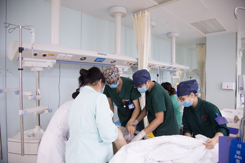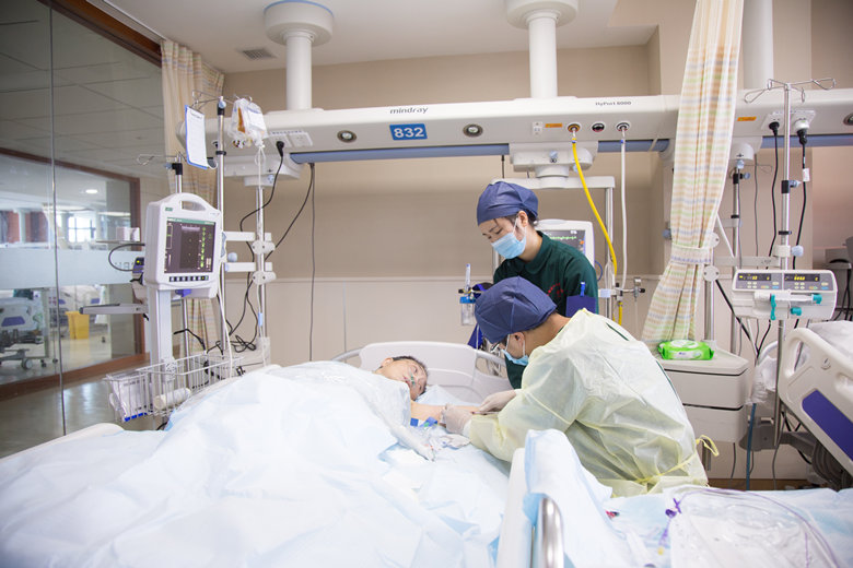 10:00,911床脑出血患者xxx病情危重被紧急转入ICU,“病人心率不齐,呼吸频率加快,需紧急实施抢救!赶快通知医生!”,张棕智第一时间赶到床前做出应急反应,为病人行心肺复苏、气管插管等抢救措施。监测设备慢慢显示病人的脉搏、血压等回归正常,患者终于从“鬼门关”被拉了回来。ICU就是这样一个与“死神”殊死搏斗的艰苦战场,男护士在体力、抗压和医疗机械的操作方面具有优势,张棕智也希望能有更多的男护士投入到护理工作,男生也可以撑起护理的半边天。