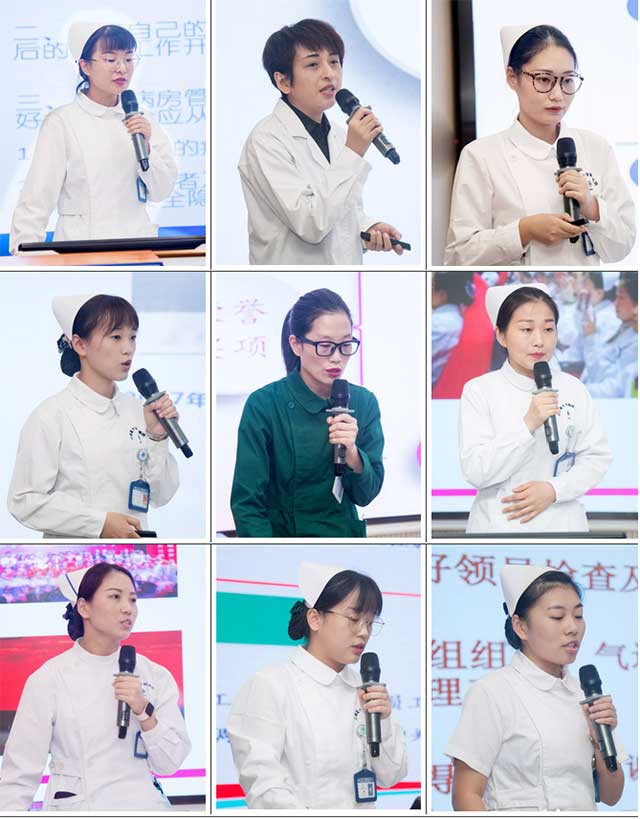 竞聘现场,严肃认真。18位参聘选手按照抽签顺序依次上台演讲。她们个个仪表端庄、精神饱满,清晰地阐述了对竞聘岗位的角色认识与理解、竞聘优势以及对护士长工作的展望。