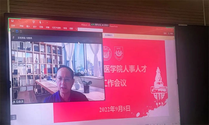 本次会议采取线上线下方式举行。各附属医院的人力及院办相关负责人线上观看了视频直播。