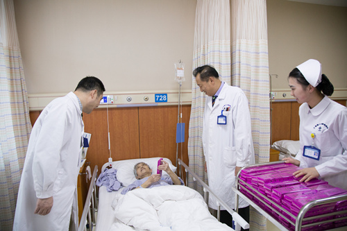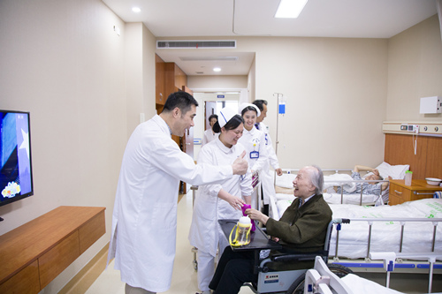 九九重阳节,浓浓敬老情。我院在搬迁新院后的第一个重阳节里,为了让住院老人住院期间能感受到节日的气氛,特别是对于外地的患者在沪能过上一个别样的老人节,10月8日下午, 我院潘耀良副院长带领医务科、护理部、办公室相关负责人到住院各病区,把一块块饱含医护工作者们温情和关爱的重阳糕送到了老人们的手中,并向他们送上节日的祝福。一块小小的重阳糕拉近了医护人员与患者之间的距离,这样暖心的举动受到病区老人和家属们的连连称赞。