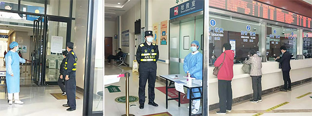 院感防控委员会决定,从四个管道进行防控:中央管控、人员管控、通道管控,重点科室管控等。除了急诊科门口把控人员流动外,还在1楼电梯口进行全天值守,严防通道。院感科每天进行流调统计,在微信院感群里,每天各科室都要上报发热情况及中风险地区人员旅居史,做到有问题及时上报,及时沟通,及时处理,有条不紊地防控疫情,打有准备之战,打胸有成竹之战。