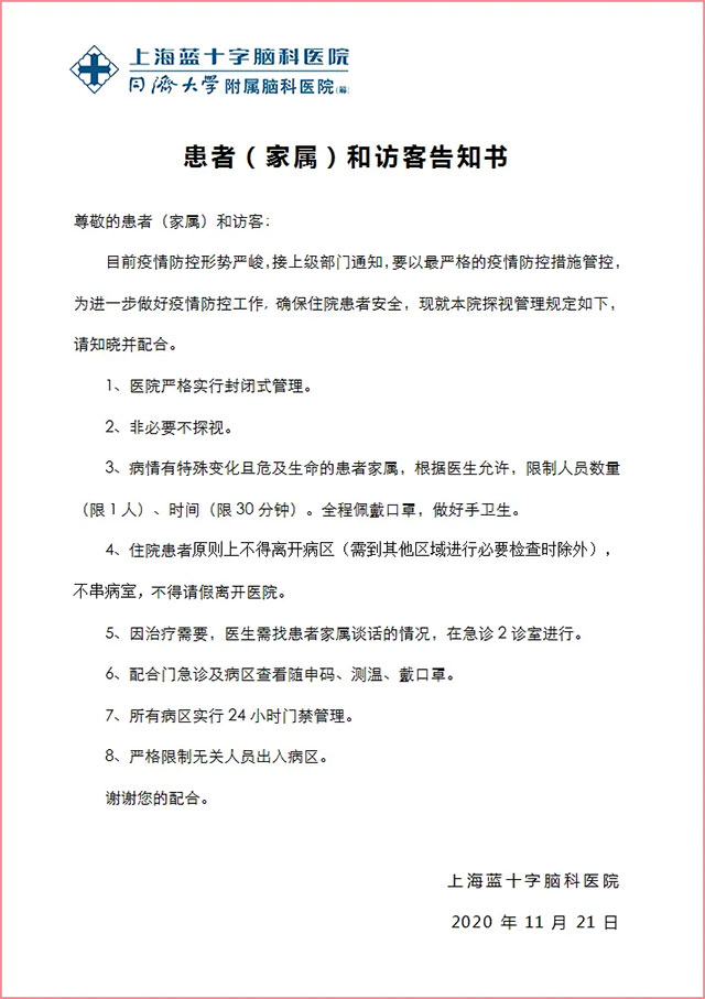 上海蓝十字脑科医院2020年11月23日