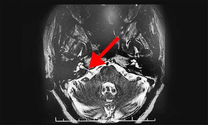 术中,沈建康教授充分保护患者的小脑组织。借助蔡司显微镜(双荧光),可见小脑前下动脉弓形压迫面神经起始区,仔细分离动脉周围蛛网膜粘连,显露右侧面神经,垫入特殊材质垫片将面神经和责任血管分离……历时近3个小时后,手术顺利完成。