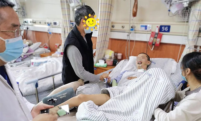 随后,4A病区特邀中医科、康复科、高压氧科专家会诊,为刘强定制促醒方案。三个月后,刘强逐渐恢复意识。可以张口,吃东西,可以与别人互动,说个笑话他也会跟着笑,肢体活动也明显好转!