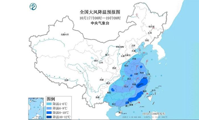▲ 10月17日中央气象台大风降温预报