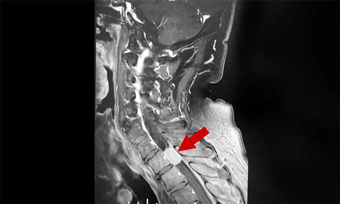 半个月前,陈阿姨发现左手臂麻木感越来越强烈,做家务都有点无力,还出现了胸部麻木和膝盖疼痛,这才在家人的陪同下到当地医院求诊。经颈椎核磁共振检查,结果显示颈髓椎管内肿瘤。困扰陈阿姨多年的上肢麻木不是颈椎病,而是肿瘤所致。