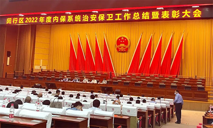 此次大会由上海市公安局闵行分局、上海市闵行区企事业单位治安责任人协会和上海市闵行区文化保卫协会联合主办。会上表彰了2022年度治安保卫和防疫工作中表现突出的先进集体和个人,通报2022年度主要工作,部署2023年工作并签订2023年治安防范责任书。