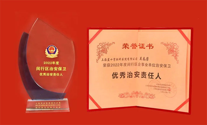 2022年,在区公安分局的直接领导下,包括蓝十字脑科医院在内的闵行区企事业单位及广大治安责任人、保卫干部,紧紧围绕防控防疫及复工复产中心工作,积极开展各项治安防范工作,严密构筑防控体系,深化行业监管方式,创新社会治理模式,全面推进人防、物防、技防建设,确保了单位内部安全,有效维护了单位和社会治安稳定,为闵行防控防疫、复工复产,以及城区安全和社会治安稳定作出了成绩,涌现出一批先进集体和优秀个人。