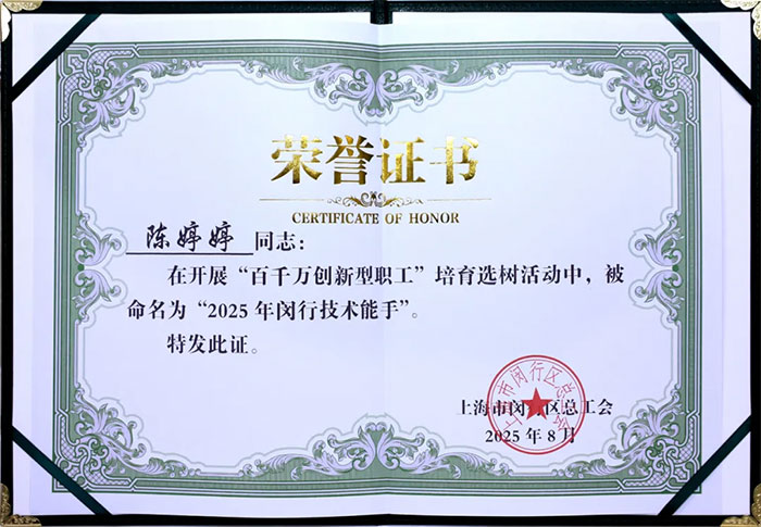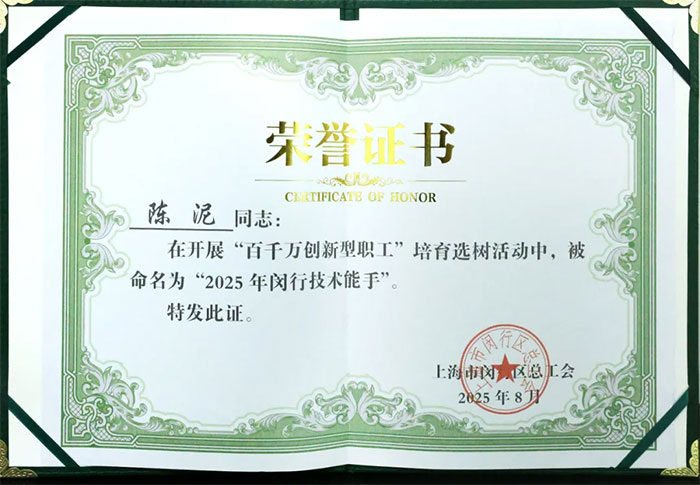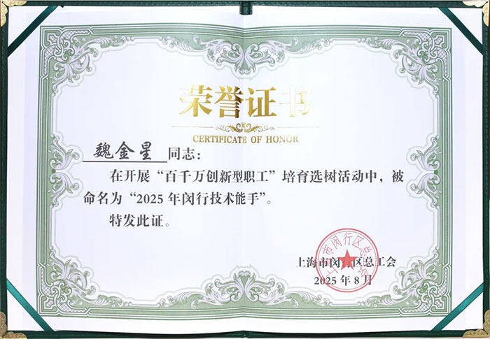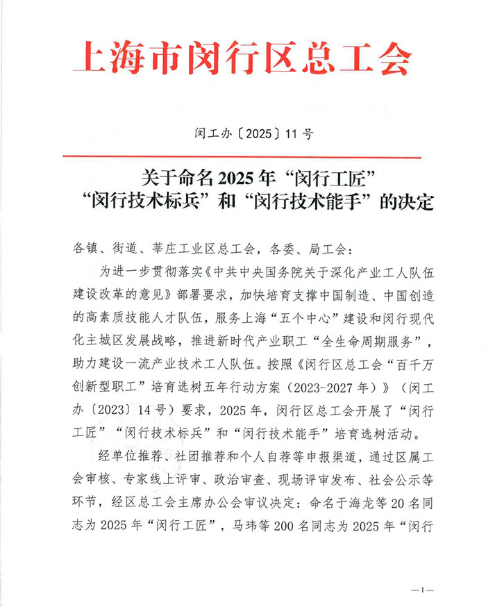 近日,闵行区总工会发布了2025年“闵行工匠”、“闵行技术标兵”和“闵行技术能手”名单。