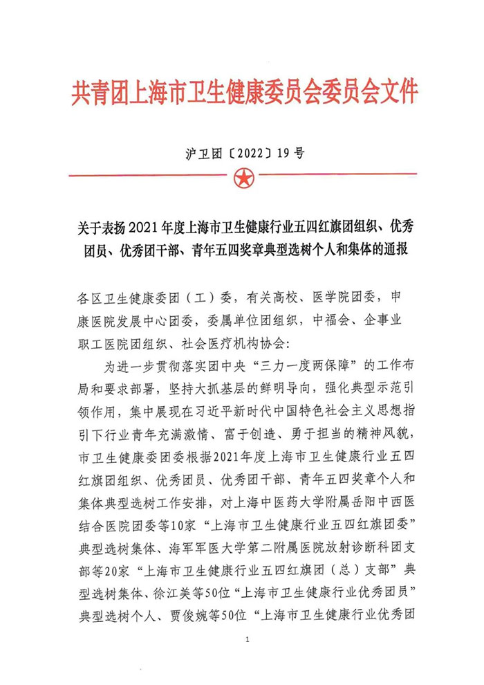 11月10日,市卫生健康委团委通报表扬2021年度上海市卫生健康行业五四红旗团组织、优秀团员、优秀团干部、青年五四奖章典型选树个人和集体。上海蓝十字脑科医院团支部荣获“2021年度上海市卫生健康行业五四红旗团(总)支部”称号。