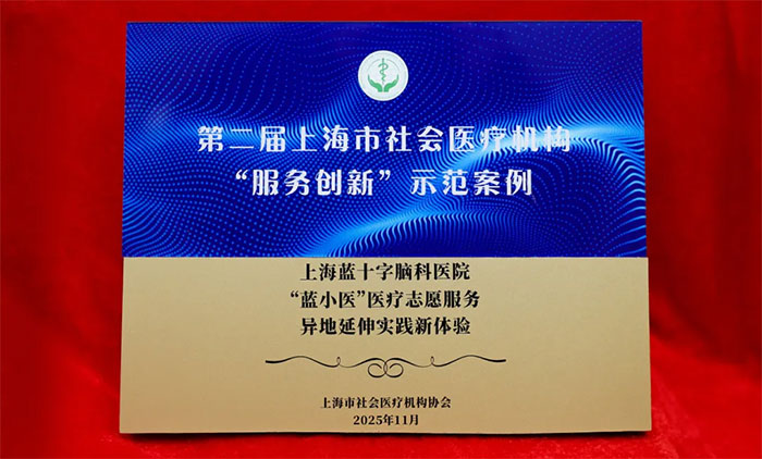 2025年11月27日,上海市社会医疗机构协会四届三次会员代表大会暨第十二届管理年会隆重召开。会上,在第二届上海市社会医疗机构 “服务创新” 优秀案例征集活动中,上海蓝十字脑科医院“‘蓝小医’医疗志愿服务异地延伸实践新体验”项目荣获第二届上海市社会医疗机构“服务创新”示范案例。
