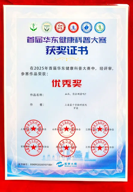 经过两轮激烈角逐,医院选送的作品在【科普短视频/新媒体推广/病历译写】赛道中表现突出,最终荣获三等奖。上海蓝十字脑科医院也因积极参与活动,被活动组委会授予“优秀组织奖”,以感谢医院为提升市民健康素养贡献了一份力量。