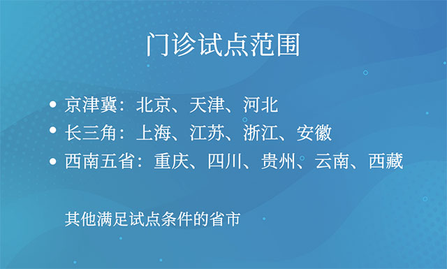 通知指出,2020年底前,总结京津冀、长三角、西南五省等先行试点地区可复制可推广的试点经验,依托国家医保局跨省异地就医管理子系统进一步扩大门诊费用跨省直接结算试点范围。