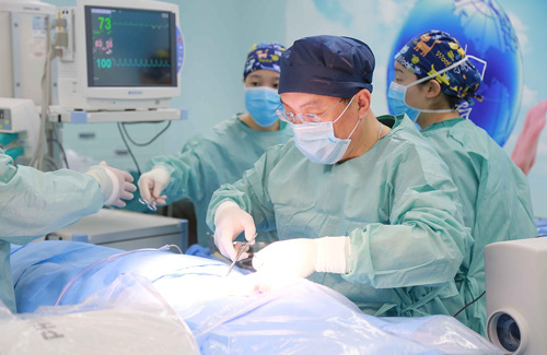 潘仁龙主任(左)和李士其教授在手术中