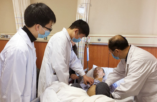 潘主任(右)带领年轻医生查房