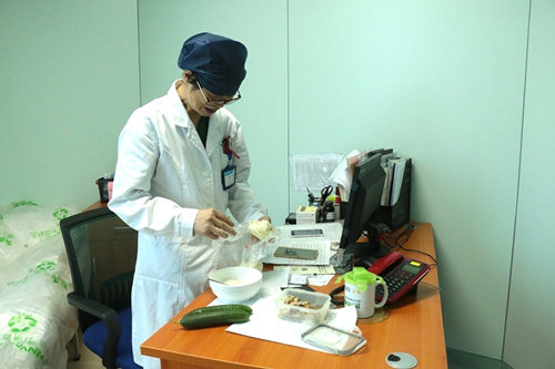忙碌半天,李鲁萍主任终于可以吃一顿简单的午饭