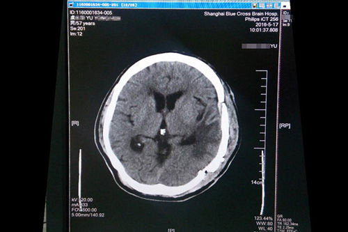 2016年4月,浙江宁波人,57岁的虞文军(化名)因巨大脑肿瘤(8*6cm) 前来上海蓝十字脑科医院就诊。经包括沈建康教授在内的专家会诊后,考虑到患者脑肿瘤巨大、肿瘤周边血供丰富,手术指征明确,常规手术切除恐出血过多,增加手术风险,决定术前先为虞文军行“超选择性全脑血管造影术+脑膜瘤供血动脉栓塞术”,对肿瘤供血动脉进行栓塞,减少出血量,再全麻下行“左侧颞底部巨大脑膜瘤切除术”。沈教授已经有十年未见过患者有如此大的肿瘤,患者术后随即恢复清醒,自我感觉头脑较前更清醒,语音、语速恢复较好,不到半个月便已能正常行走,顺利出院。