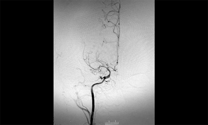 入院后,赵先生的DSA(脑血管造影)检查再次明确“烟雾病”表现:双侧大脑中动脉主干管腔纤细、分支细小;周围代偿性小血管网建立;右侧颈内动脉C3-4段纤细,显影毛糙;两侧颈内动脉C4-6段钙化形成伴管腔轻—中度狭窄。