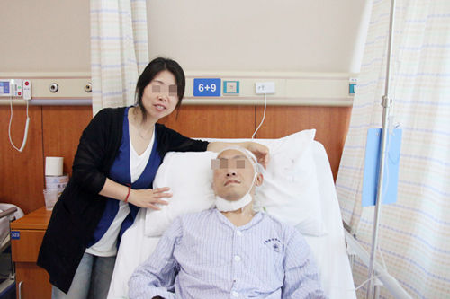 患者刘先生和爱人在一起,这是手术后第四天,他意识清楚,精神良好