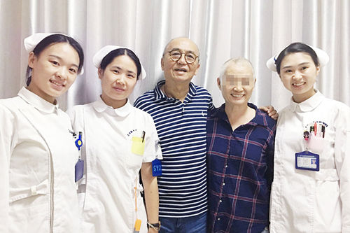 时间过得很快,在太太术后的第9天,李老师已经在办理出院手续了。离开医院前两天,小护士们都抢着和他合影留念。