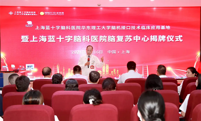 上海蓝十字脑科医院一直致力于昏迷患者的促醒工作,2016年开始启动相关研究,一直孜孜不倦地探索这一医学难题。为让更多病人接受规范治疗,推动脑机接口技术在意识障碍病人中的应用,造福更多患者,2021年7月,上海蓝十字脑科医院联合华东理工大学成立脑机接口技术临床应用基地暨脑复苏中心。