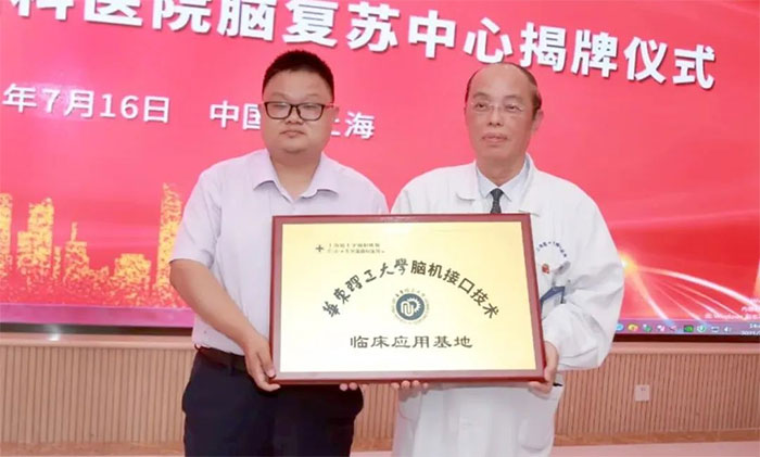 脑复苏学科是医院的重点学科,以潘仁龙主任、李士其教授等为代表的专家团队,不断探索脑促醒治疗方法,积累了较为丰富的临床经验,形成了以神经外科、重症医学科、电生理等多学科协作,脊髓刺激、高压氧、亚低温治疗等多手段结合的特色治疗体系。也正因此,医院才能有幸成为华东理工大学脑机接口技术临床应用基地。