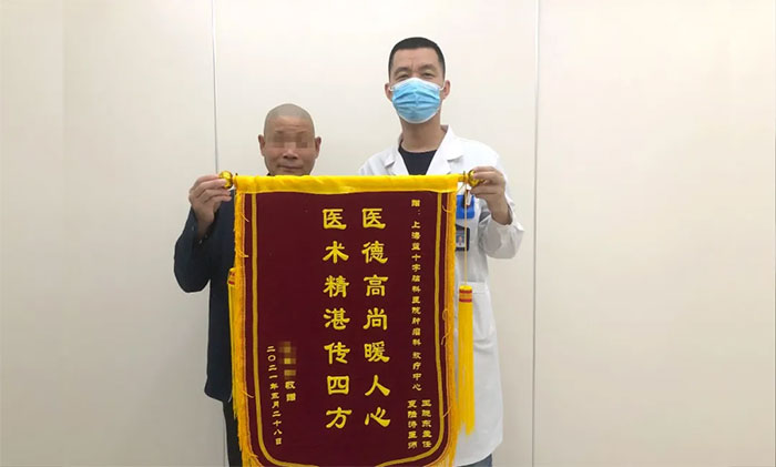 ▲ 李老伯出院时送上锦旗表达感激之情