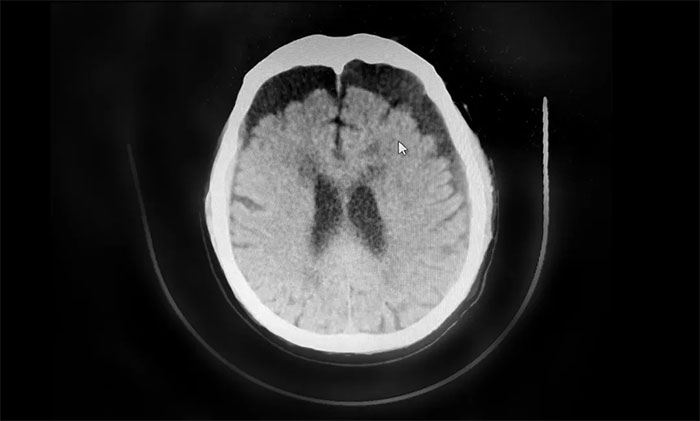▲ 患者双侧额顶部硬膜下积液血肿明显