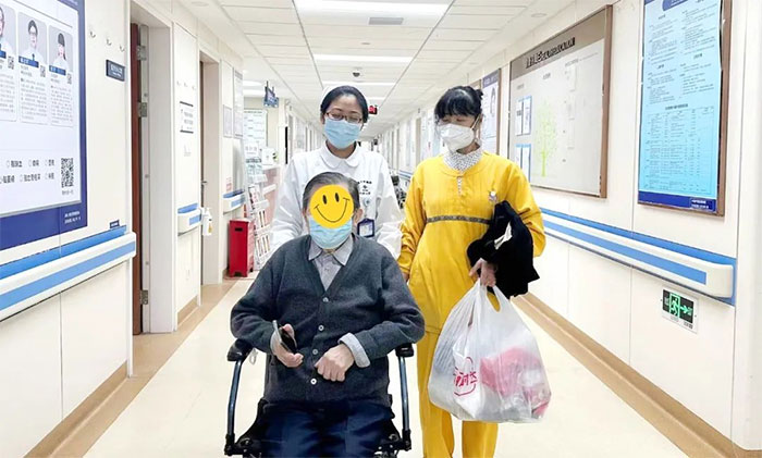 由此,殷主任带着4A的各位医生、护士与护工对刘爷爷额外关注,查房时更是愈加仔细。在4A各位医护两个多月的精细治疗及护理下,通过增强营养、勤翻身与实时掌握用药尺度等,刘爷爷没有形成压疮,没有发生误吸、呛咳,也没有并发症出现。刘爷爷不再深受疼痛困扰,在不能探视的时间里,医护们在病床前举着手机,他便和家人视频通话,精神状态明显好了许多,有时还听听戏、甚至哼哼小曲,一向注重仪表的他对护士说“等好了,我要去把头发染喽。”