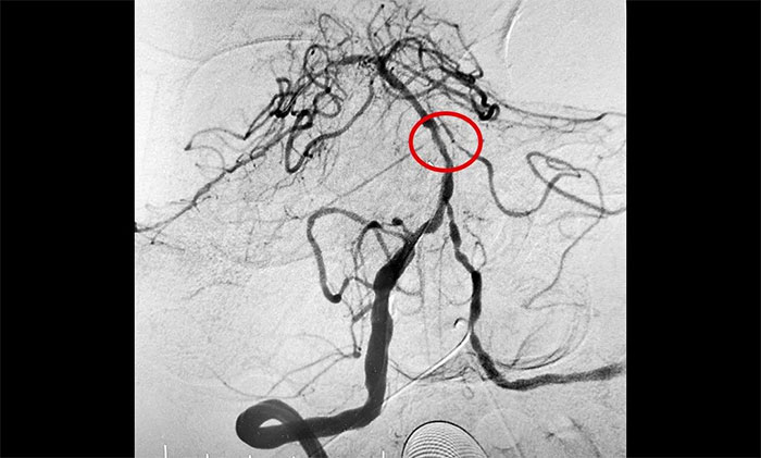 基底动脉位于颅内,且紧贴脑干,外科手术治疗基底动脉狭窄几乎没有可能,而对于重度狭窄的病人来说,单纯药物治疗收效甚微,神经介入治疗是唯一选择。但是基底动脉手术难度大、风险高,由于基底动脉穿支多,稍有闪失将会导致患者严重的手术相关脑卒中,甚至术中患者突发死亡无法下手术台,对于手术操作技术的要求极高,而患者的左侧椎动脉V4段重度狭窄及患者极差的身体素质无形中也为手术增加了新的难度。席刚明教授团队决定迎难而上,充分做好手术预案后,决定在全麻下行经皮基底动脉球囊扩张成形术,及时开通血管,挽救患者生命。